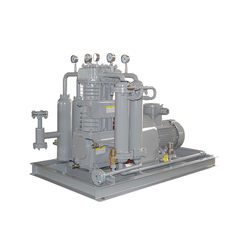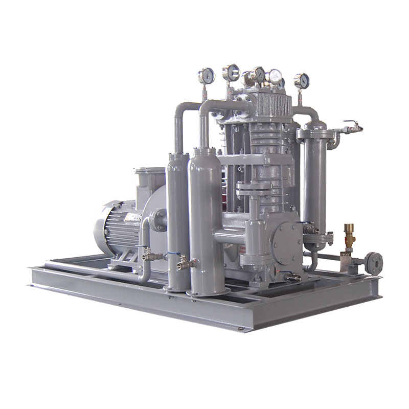 乙烯壓縮機壓縮機是我公司新型產(chǎn)品,它集壓縮機、氣液分離器、安全閥冷卻器、電動機等為一體,成一完整的機組。具有功能多、體積小、重量輕、功率小、運行平穩(wěn)可靠等特點,并有良好的安全性能。它為輸送氫氣,可為用戶最大限度地創(chuàng)造經(jīng)濟效益。由于采用獨特的無油潤滑設計,氣缸內(nèi)無需用油潤滑,因而不會對介質(zhì)造成污染,使被輸送物質(zhì)保持純凈。本機設計成機組型式,許多管線上的附件都安裝在機組上,省卻了氣液分離器、穩(wěn)壓罐、安全閥、進氣過濾器等,減小了機房的面積,減少了操作維護工作量,節(jié)省了投資。